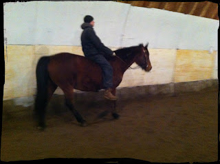 Went out to the stable yesterday after work. It was cold, maybe - 12 but felt like -26 with the windchill. Refilled the hay nets, soaked some beet pulp then took Eli in for a ride. My feet were freezing and it was pretty chilly, but not too chilly to walk and trot indoors OR get out of the paddock for a bit.